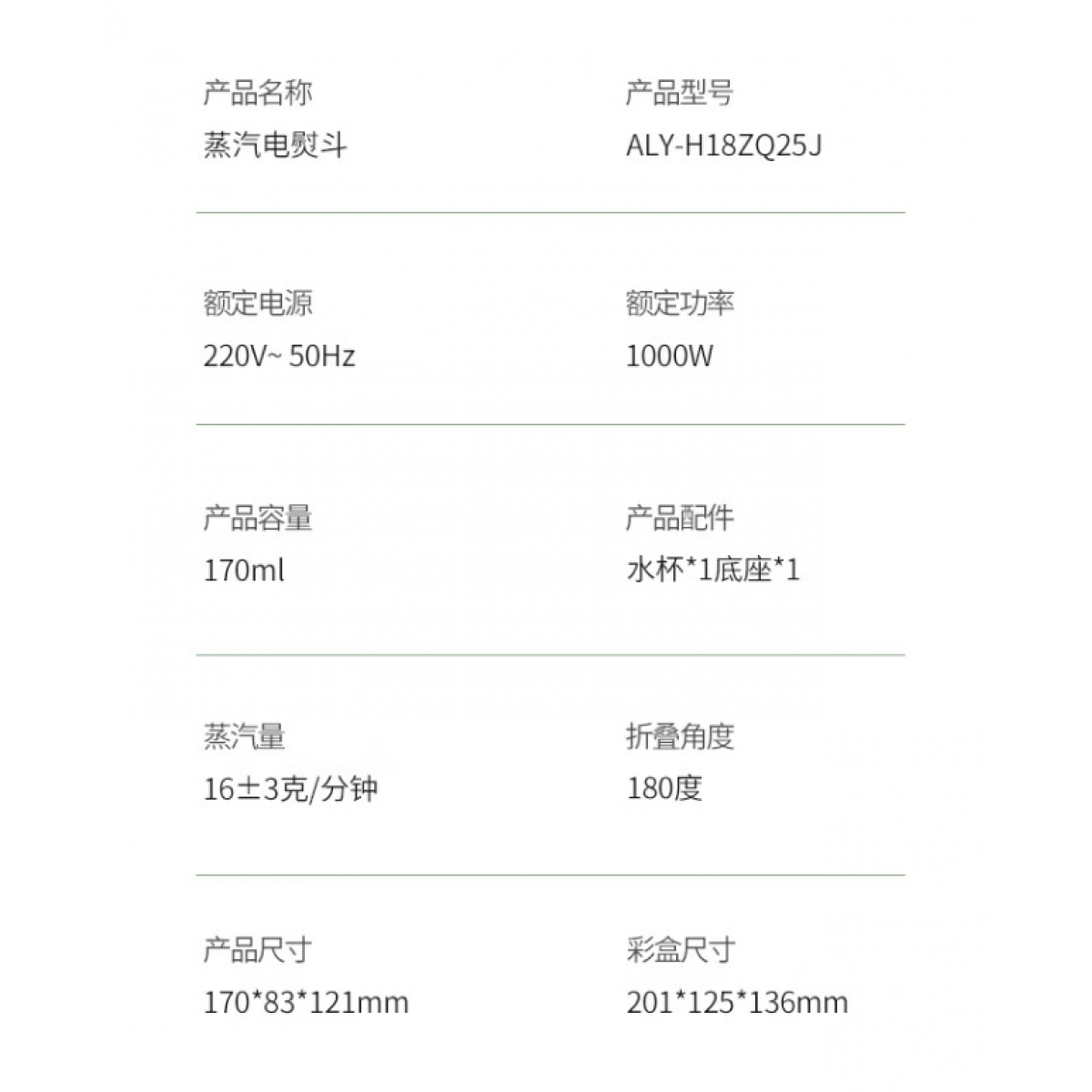 水箱容量 :170ml