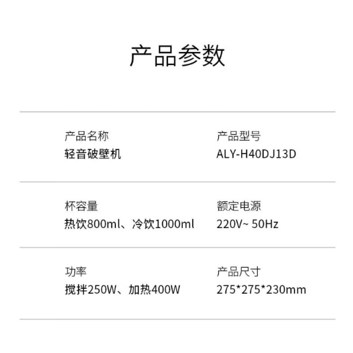 额定功率 :搅拌250W、加热400W