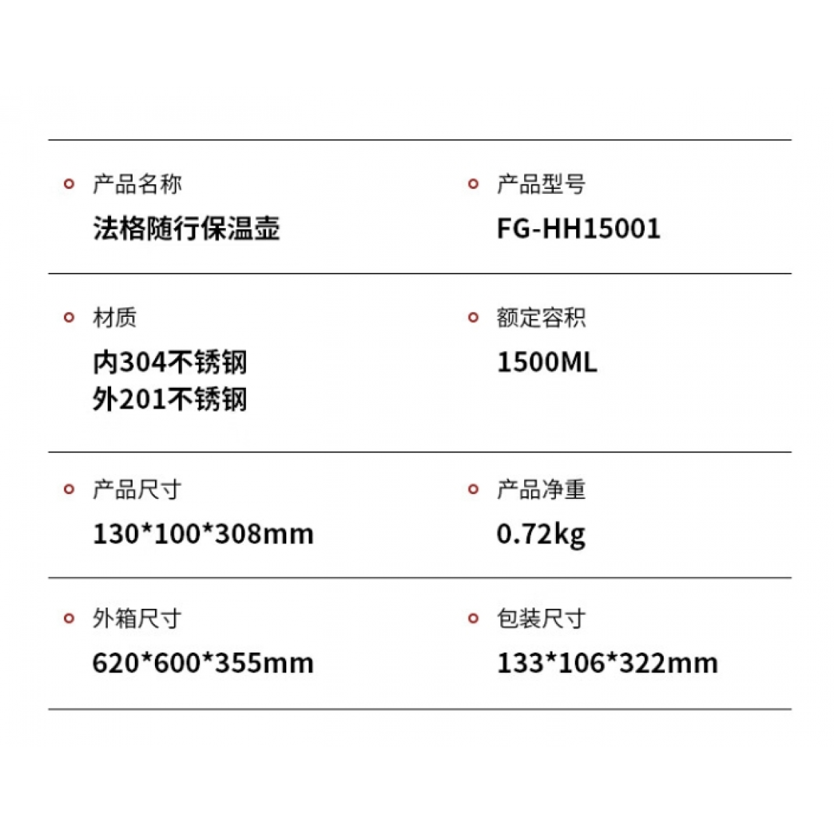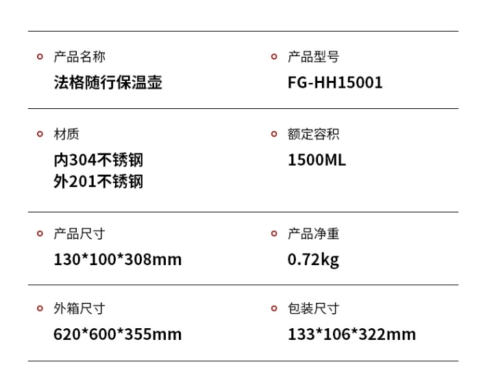 商品名称:FAGOR 法格 随行保温壶 FG-HH15001 1500ml
