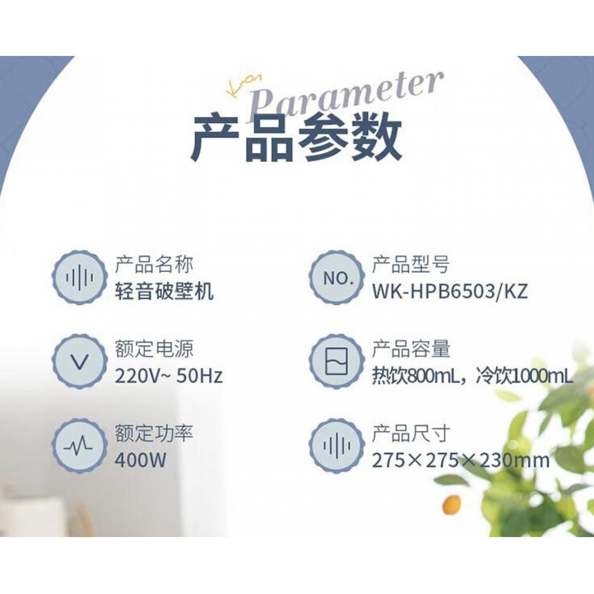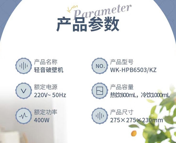 商品名称:康宁 World Kitchen轻音破壁机 WK-HPB6503/KZ