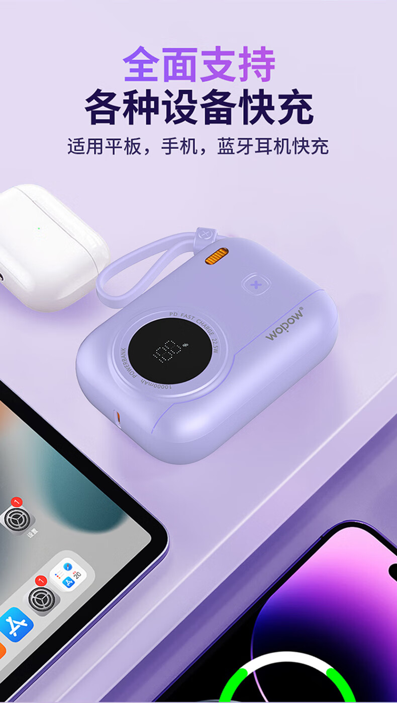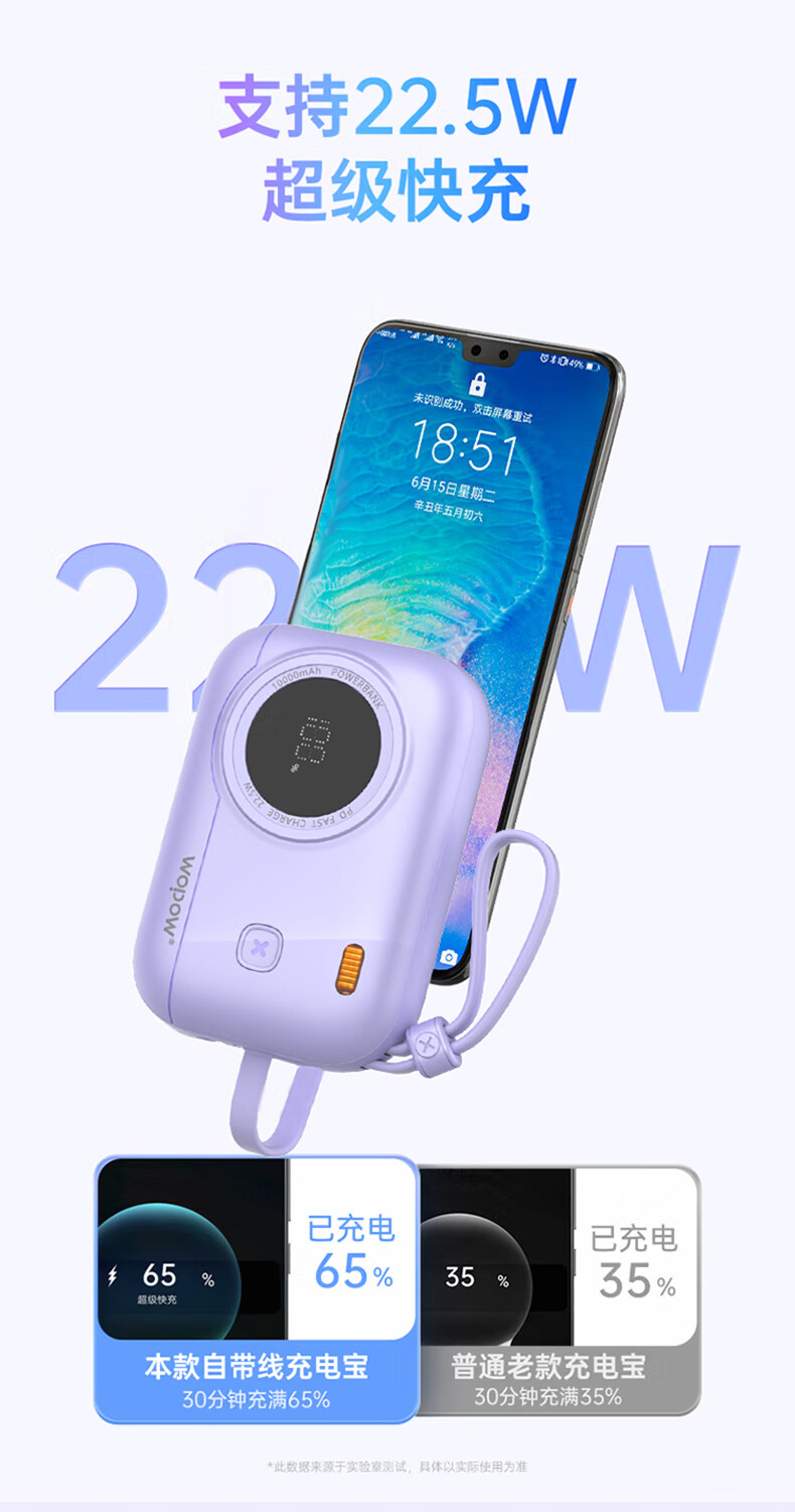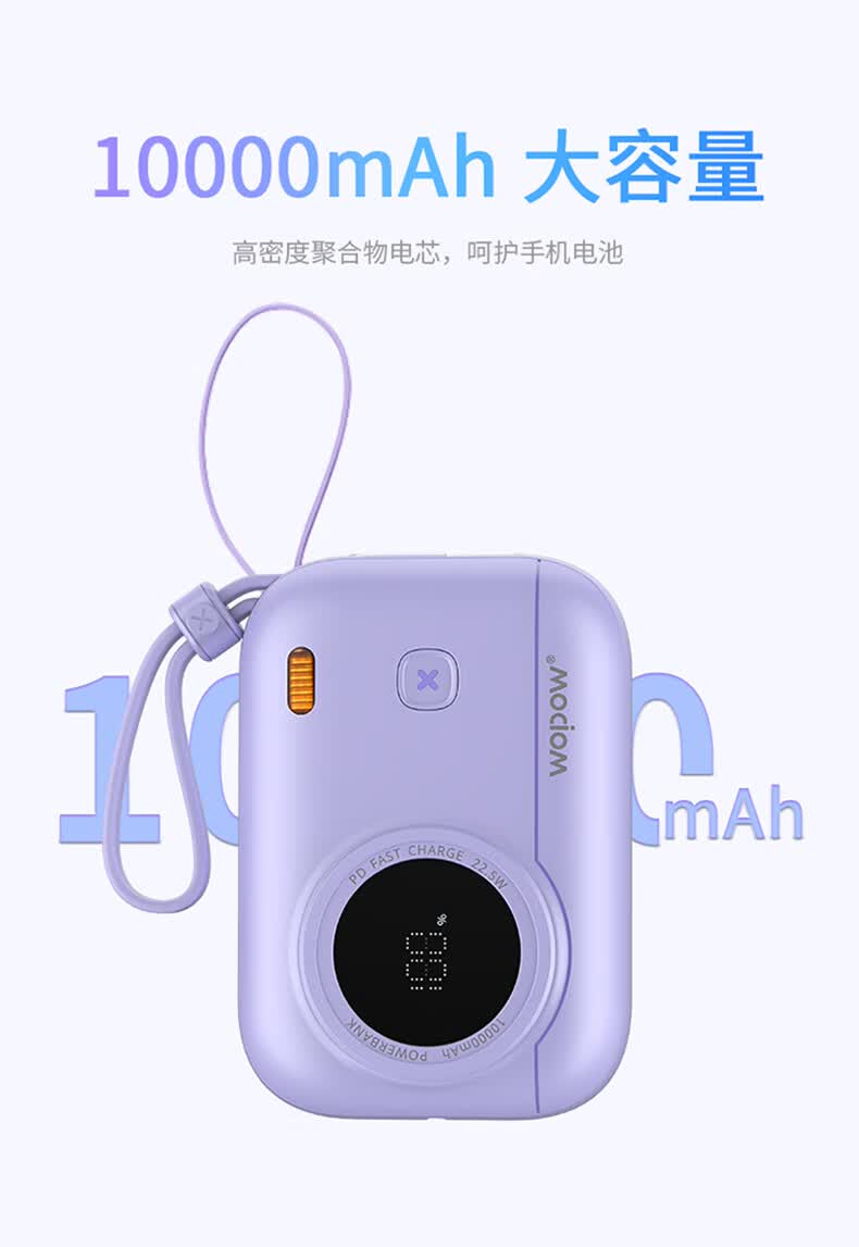 WOPOW沃品 小相机自带线22.5W超级快充+PD20W快充移动电源 LQ01