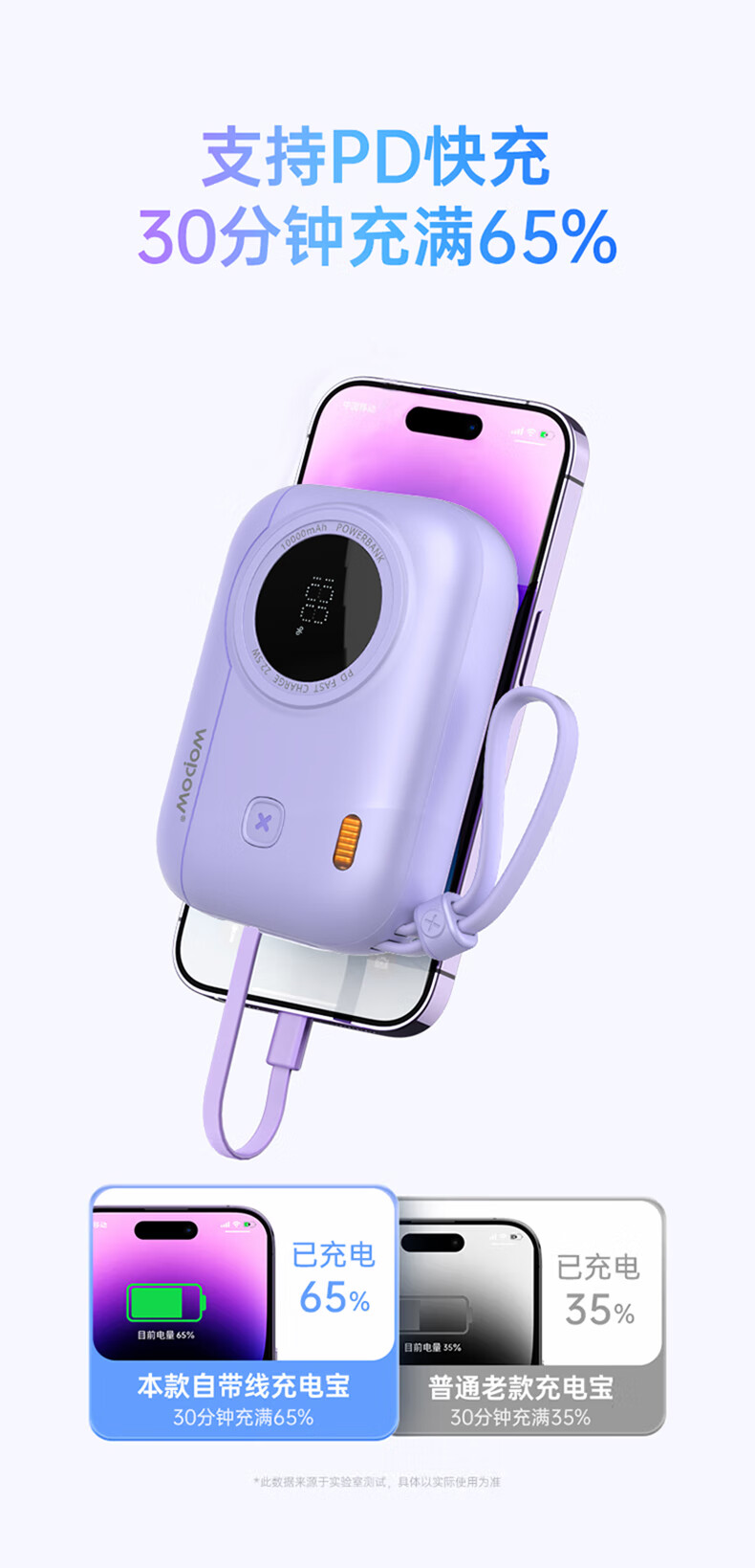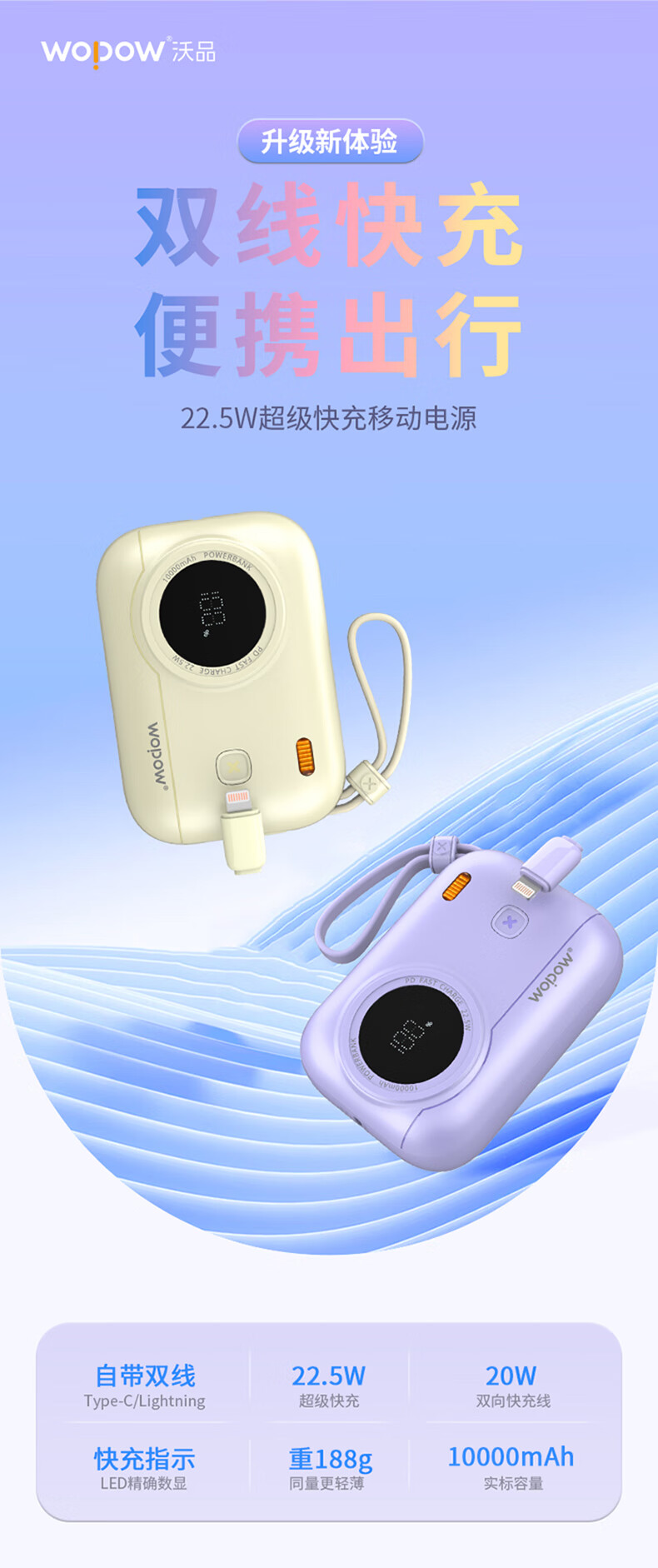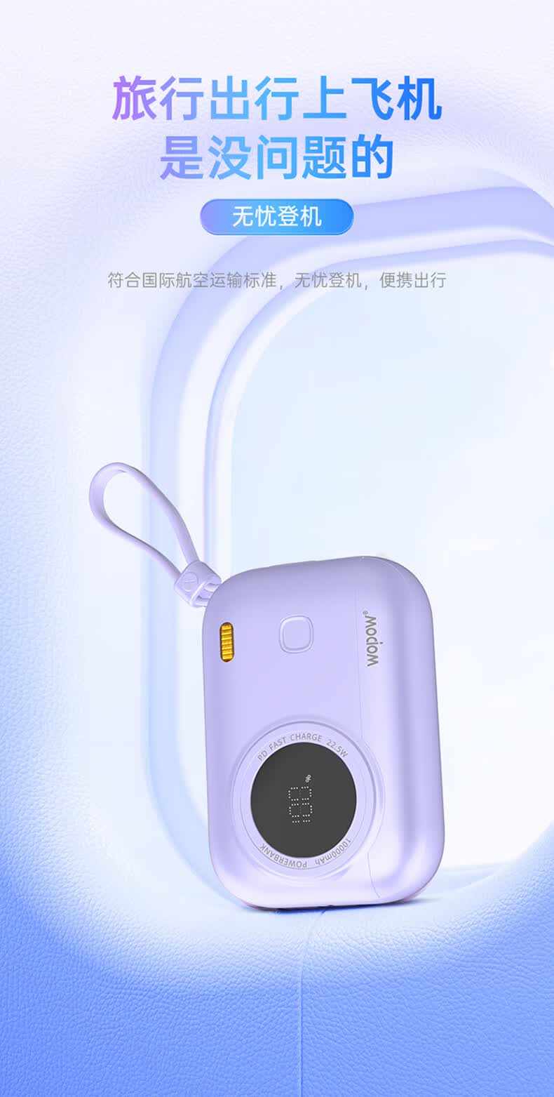 WOPOW沃品 小相机自带线22.5W超级快充+PD20W快充移动电源 LQ01