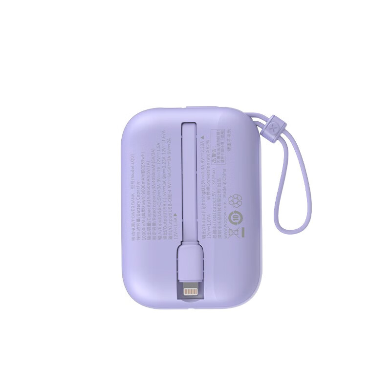 接口输出(压/流) :Type-c输出:5V/3A 9V/2.22A 12V/1.67A(MAX20W) Type-c自带线: 4.5V/5A 5V/3A 9V/2 A 12V/1.5A(MAX.22.5W) lighting自带线:5V/2.4A (MAX12W)