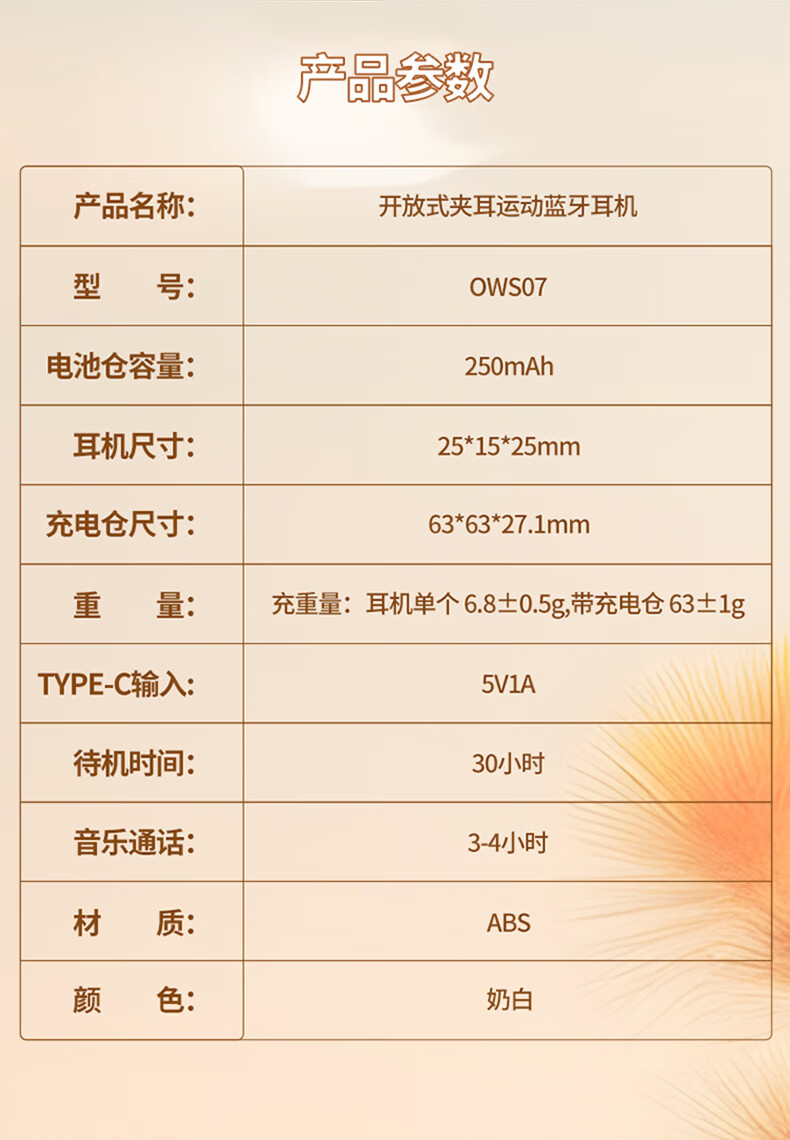商品名称:WOPOW沃品 开放式挂耳运动蓝牙耳机 OWS07