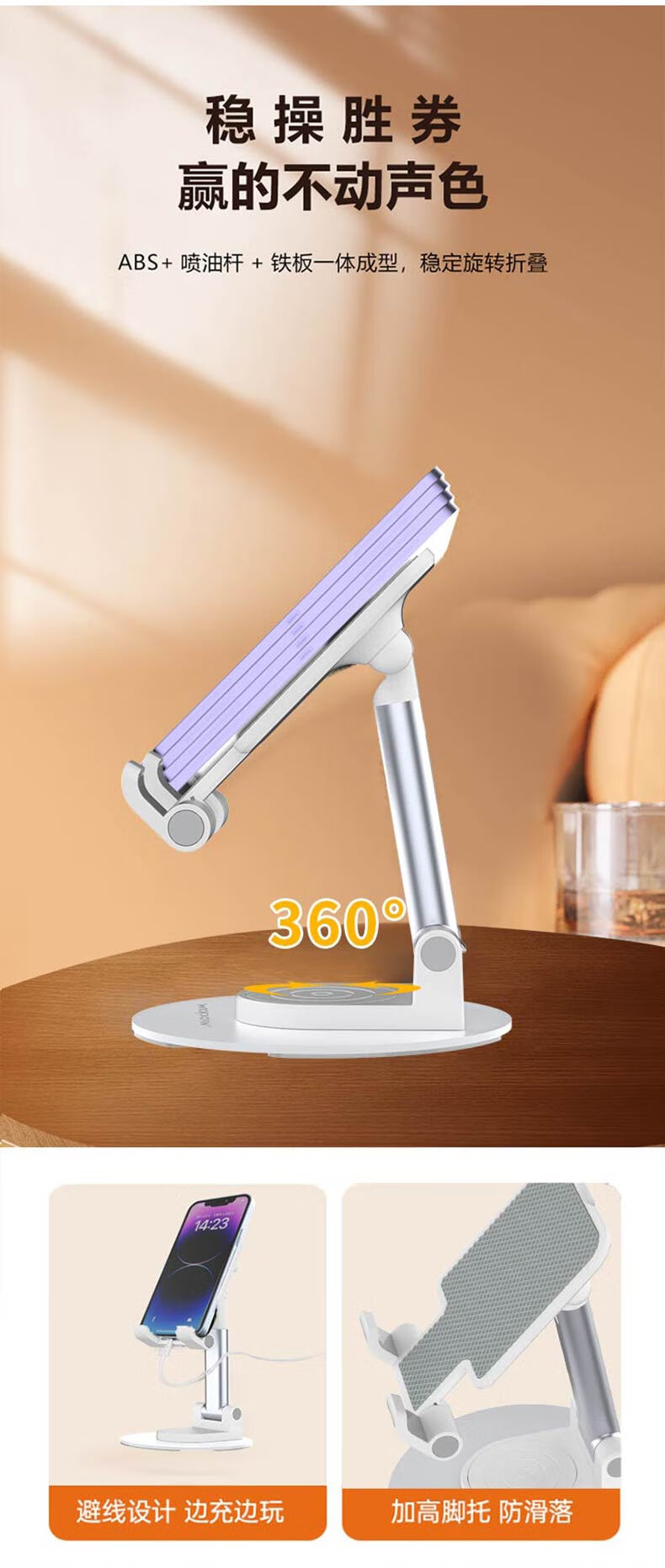 材质 :折叠塑胶ABS+碳钢板旋转底座+防滑垫