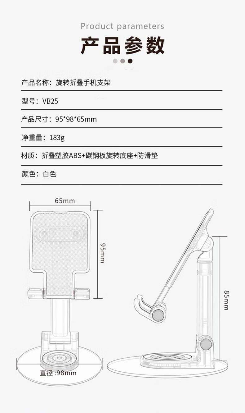 商品名称:WOPOW沃品 旋转折叠手机支架 122.2*98*27.7mm VB25