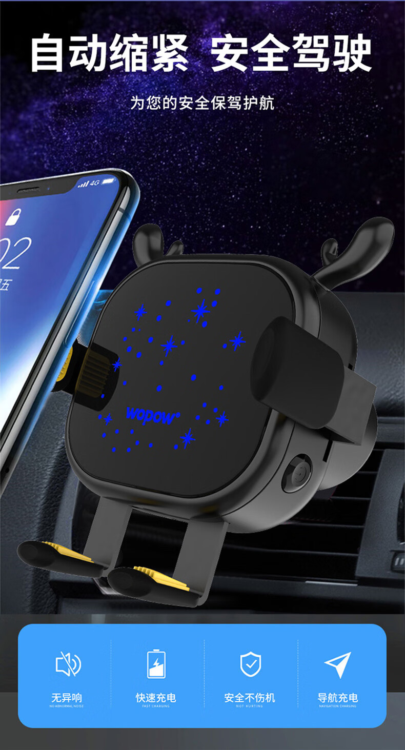 商品名称:沃品(WOPOW)BW07无线充车载支架智能感应适用于苹果安卓手机 黑色