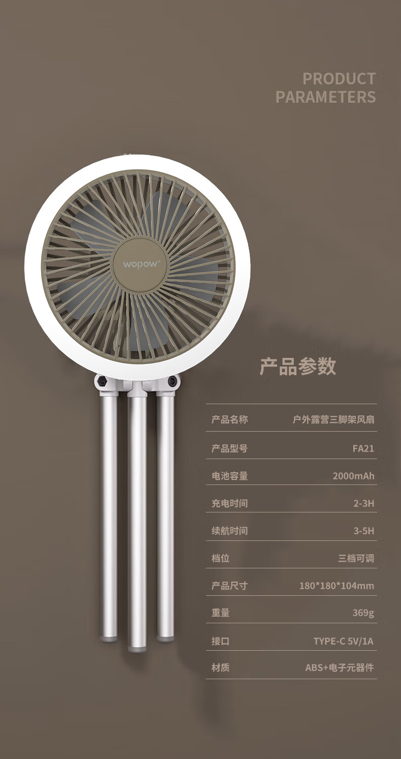 商品名称:沃品WOPOW 户外风扇 2000mAh FA21