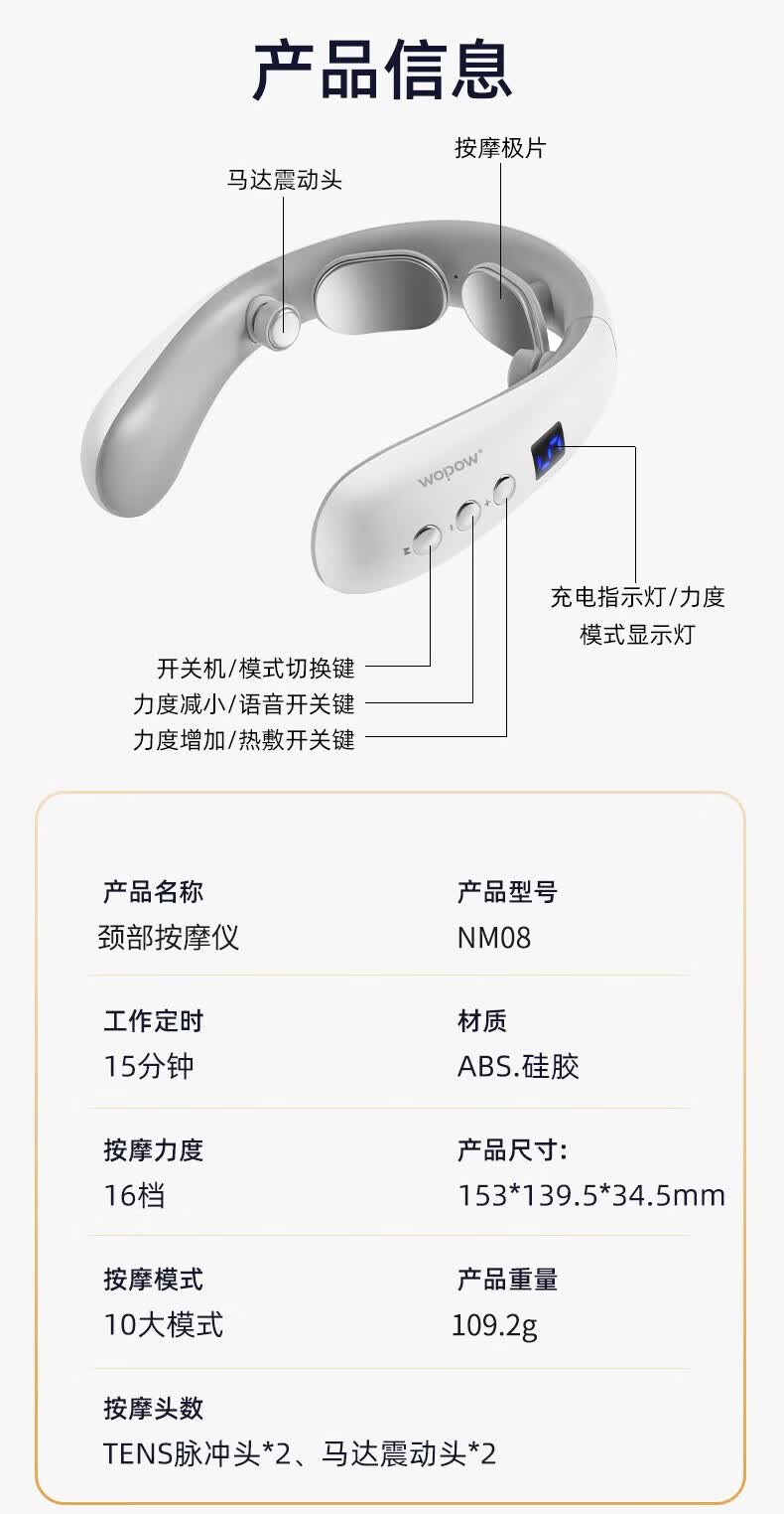 商品名称:沃品 颈部按摩仪 400mAh NM08