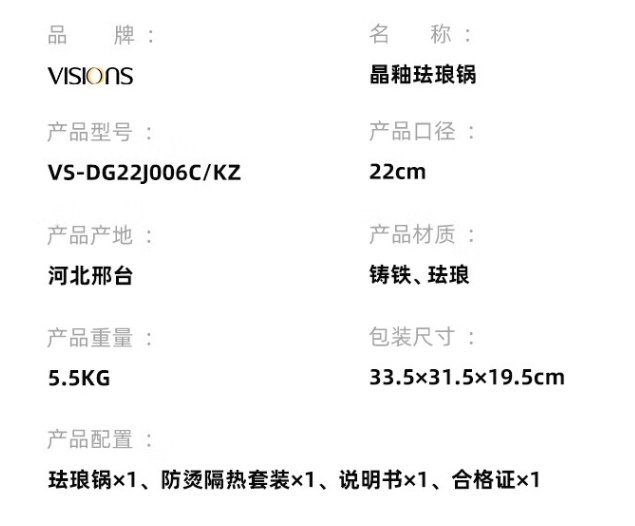 商品名称:康宁 晶釉珐琅锅 VS-DG22J006C/KZ 22cm