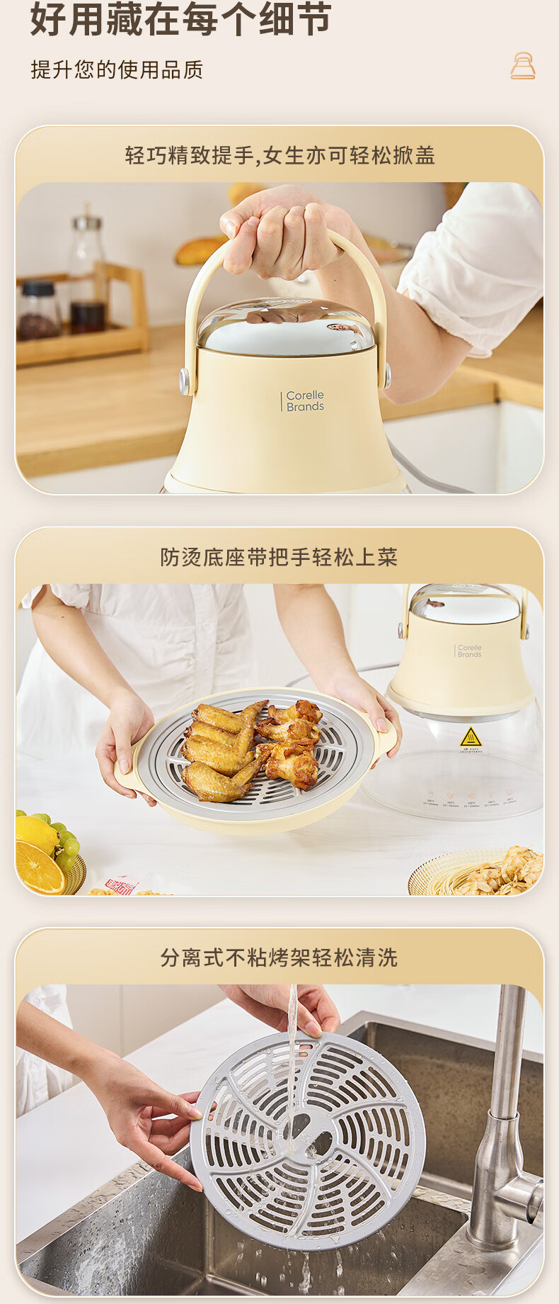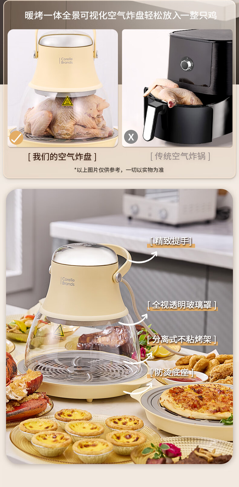 康宁 Corelle Brands暖烤一体可视化空炸盘 CB-NKYTKQZG/KZ 4L