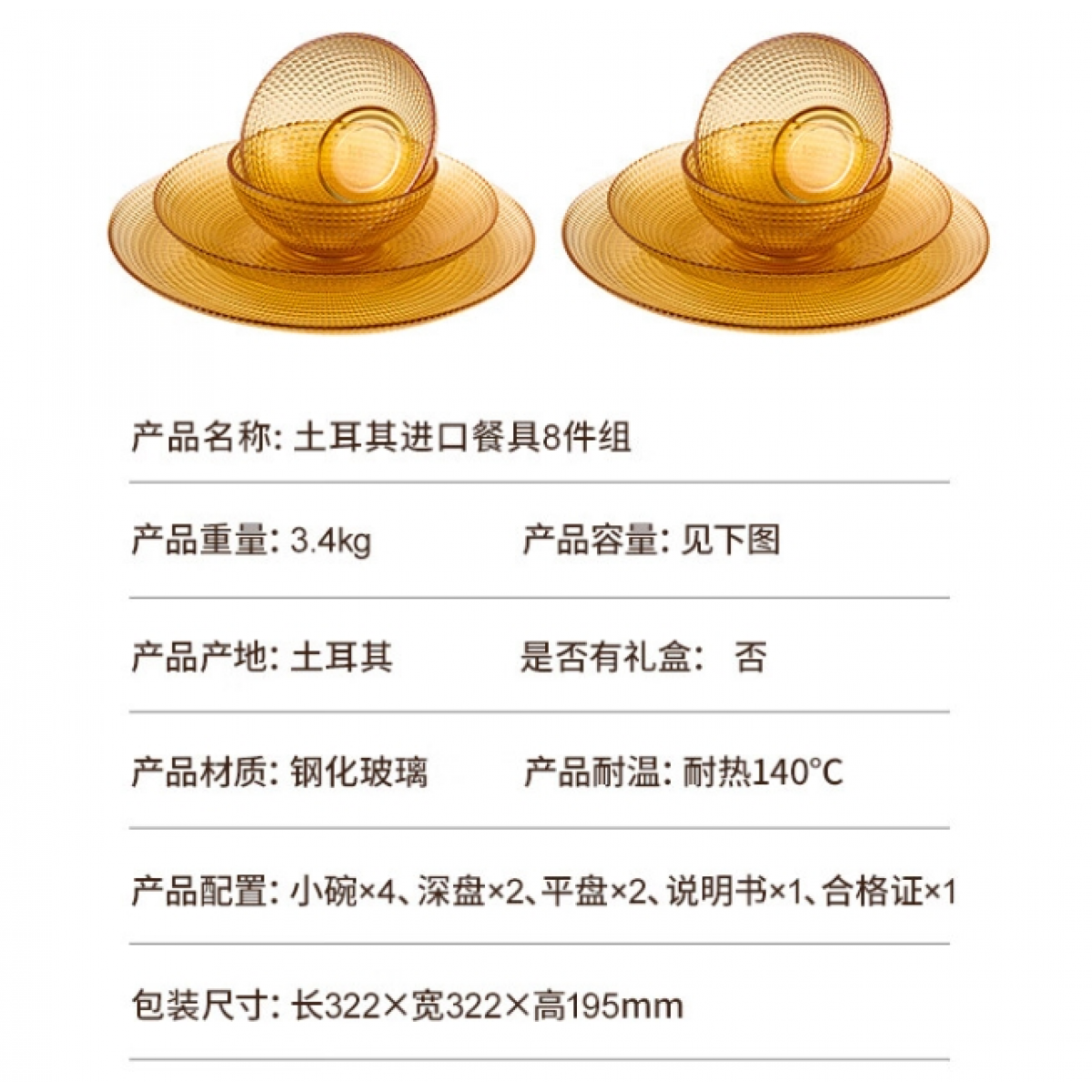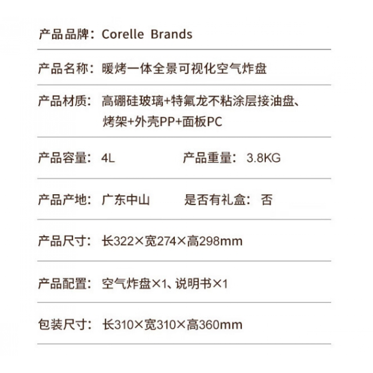 商品名称:康宁 Corelle Brands暖烤一体可视化空炸盘 (小灯泡暖烤一体全景可视化空气炸锅空气炸盘+土耳其进口餐具8件组)