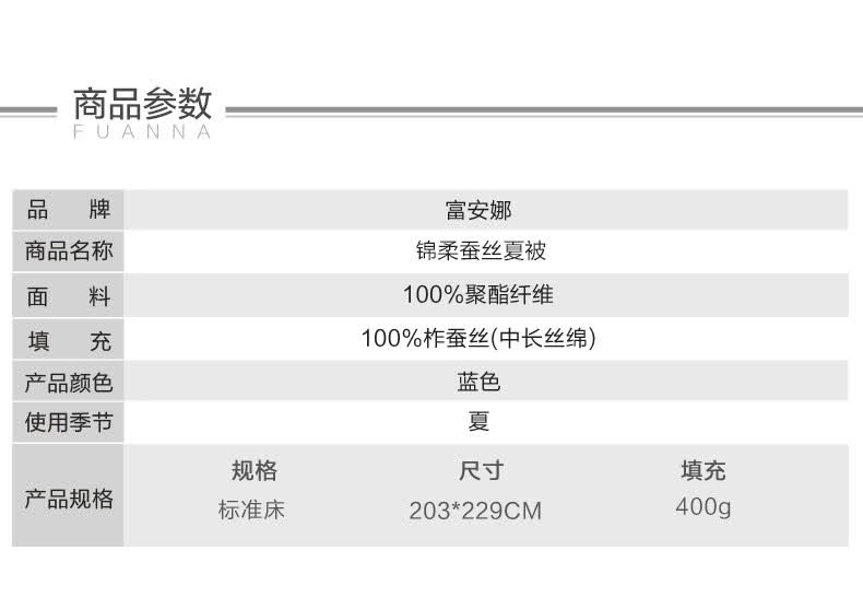 商品名称:富安娜 锦柔纯蚕丝被 203*229cm(400g)