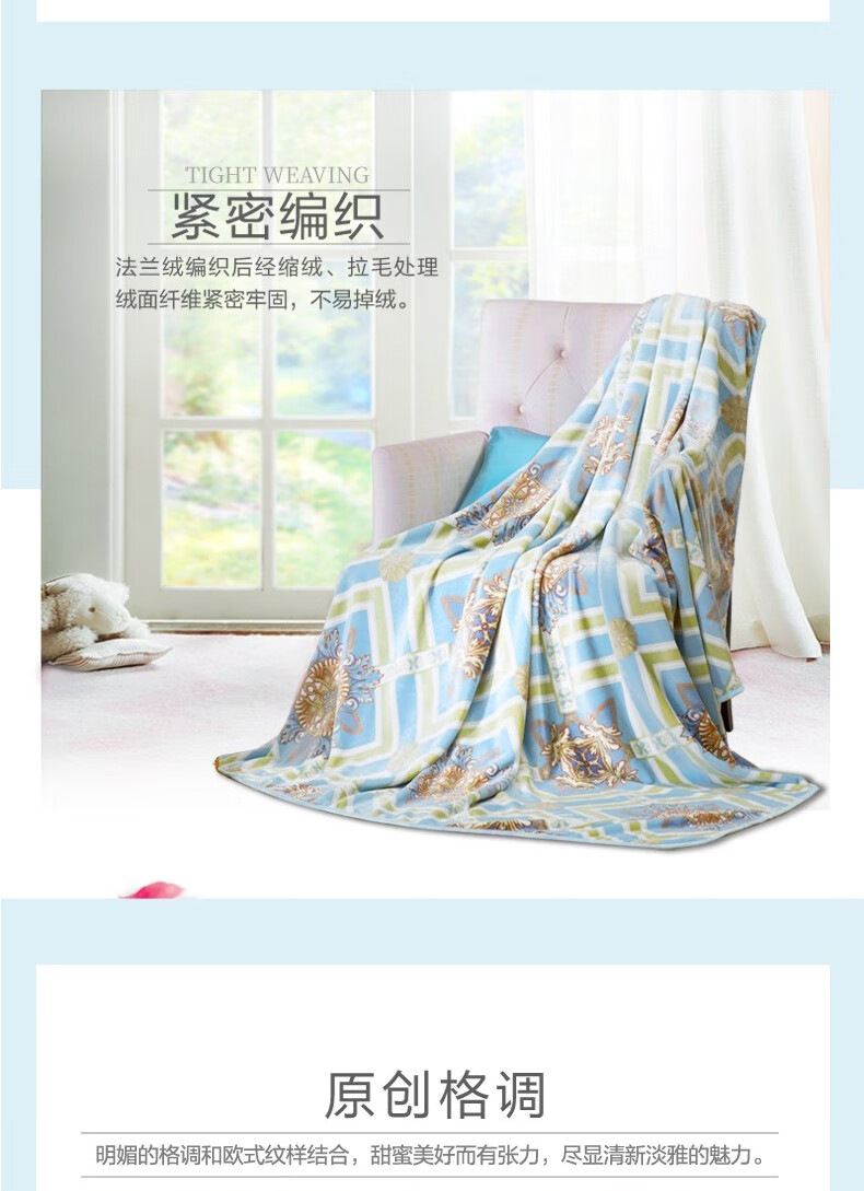 商品名称:富安娜(FUANNA)伊斯菲尔双人多功能法兰绒毯 180*200cm