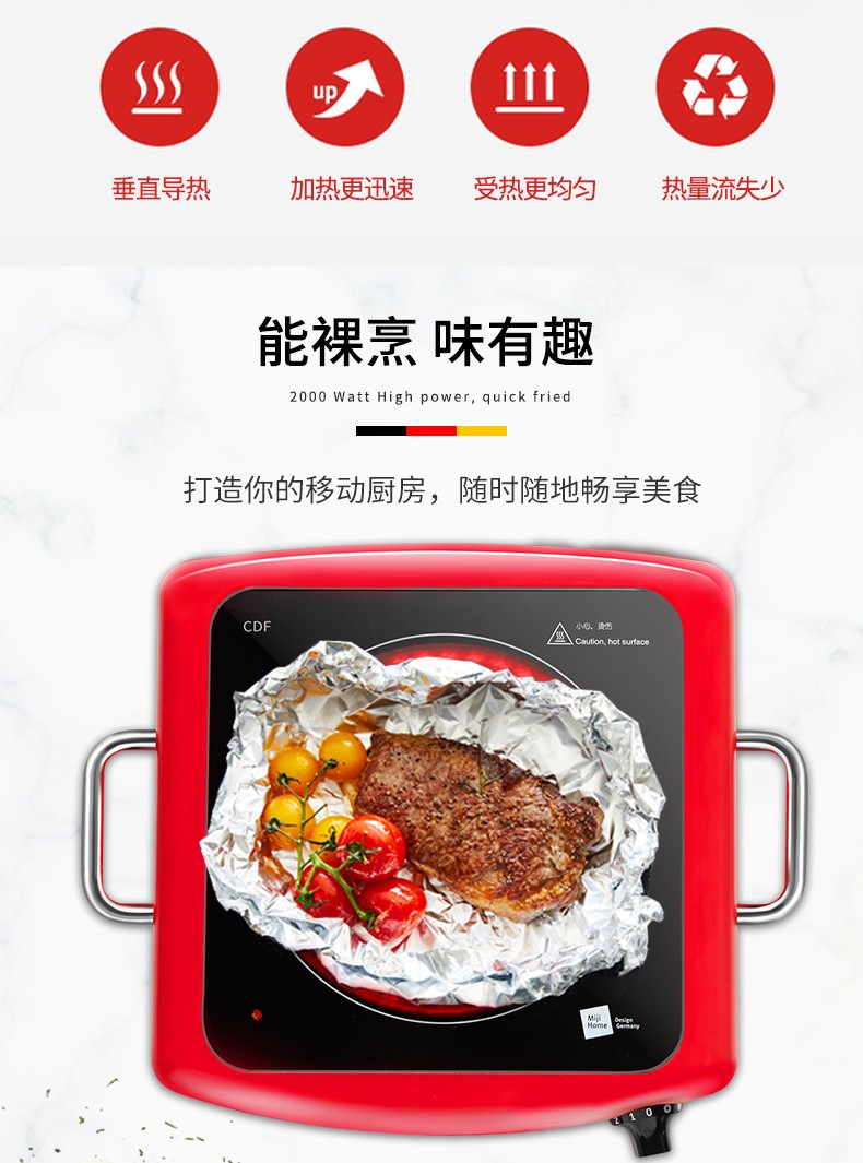 商品名称:米技生活 厨德法系列大功率电陶炉 CDF1(红色)