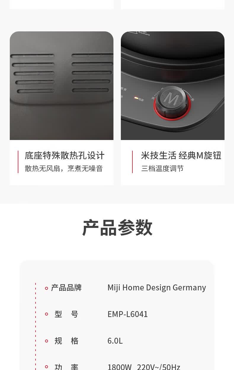 商品名称:米技(Miji Home)多功能锅 6L EMP-L6041 灰色