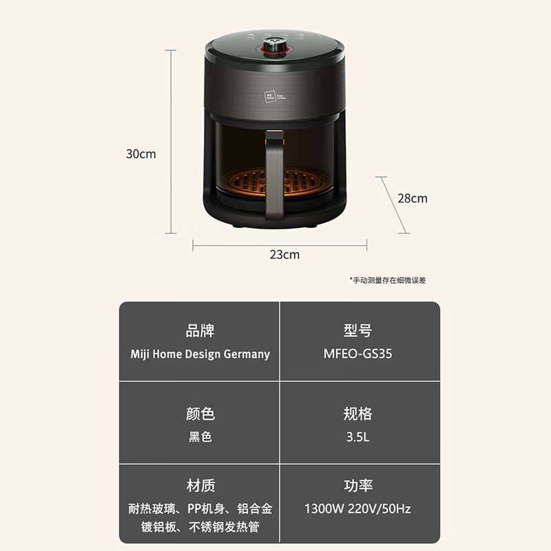 商品名称:米技(Miji Home)玻璃空气炸锅 MFEO-GS35 3.5L