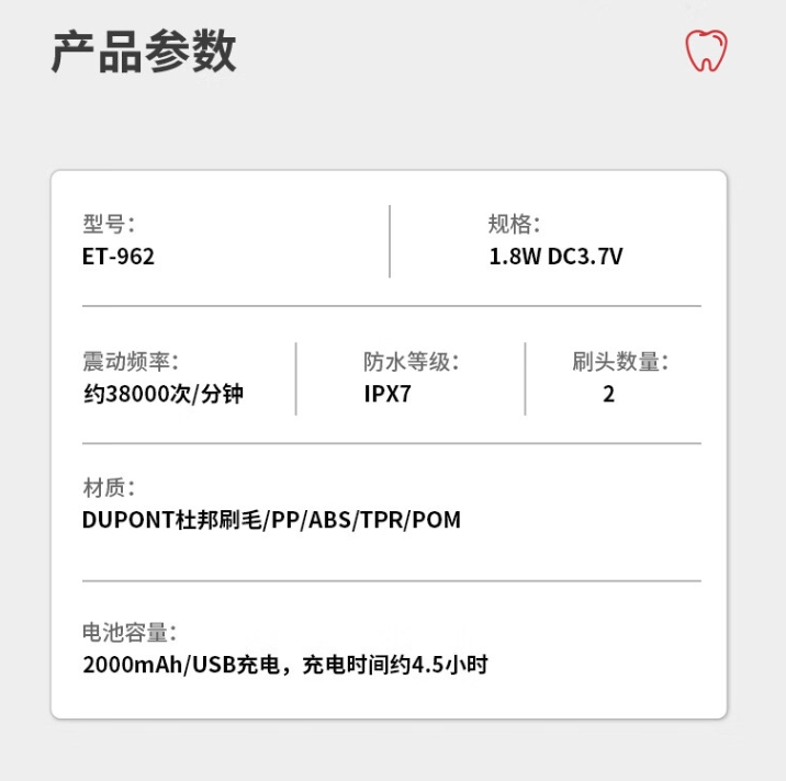 商品名称:米技 声波电动牙刷 ET-962
