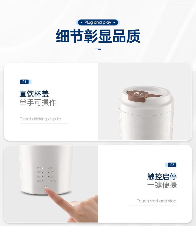商品名称:摩飞电器(Morphyrichards)便携烧水奶泡杯 300ml MR6062