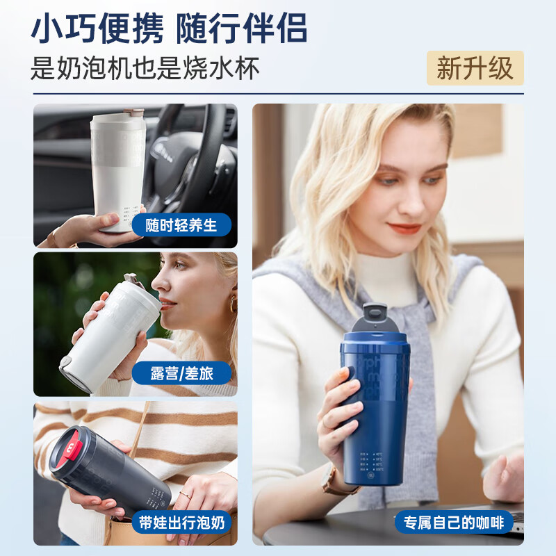 摩飞电器(Morphyrichards)便携烧水奶泡杯 300ml MR6062