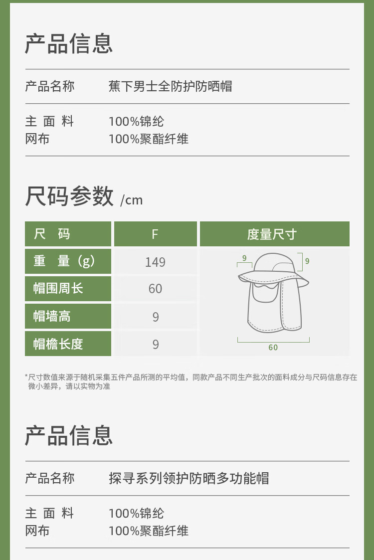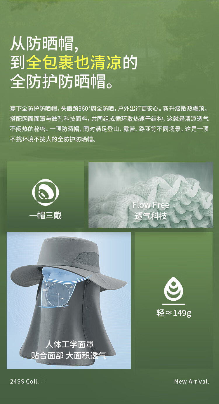 商品名称:蕉下(beneunder)探寻系列领护男士户外防晒多功能帽