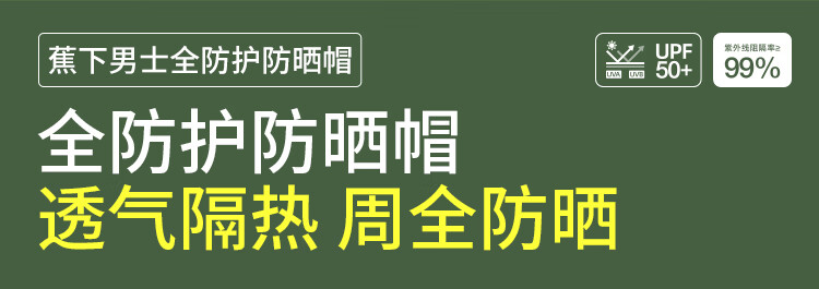 蕉下(beneunder)探寻系列领护男士户外防晒多功能帽