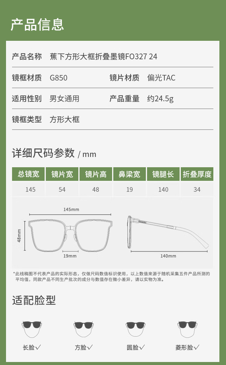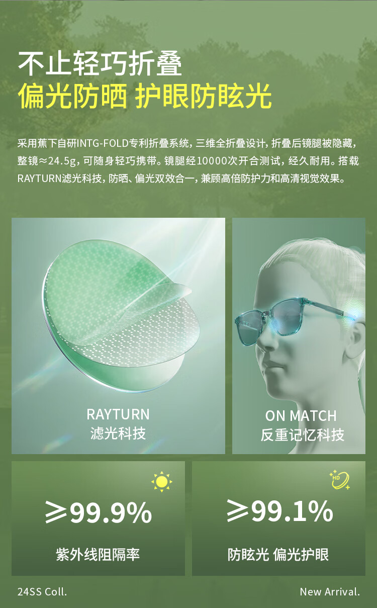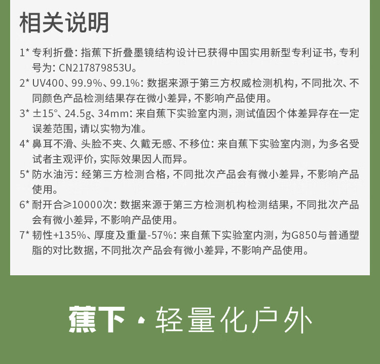商品名称:蕉下(beneunder)方形大框折叠墨镜FO32724