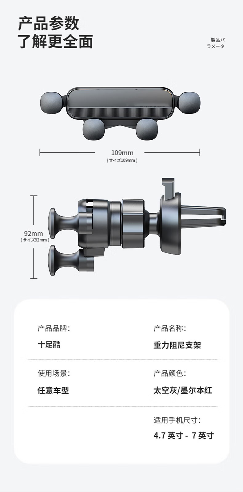 商品名称:十足酷 车载重力阻尼手机支架 SZK-V10 红色