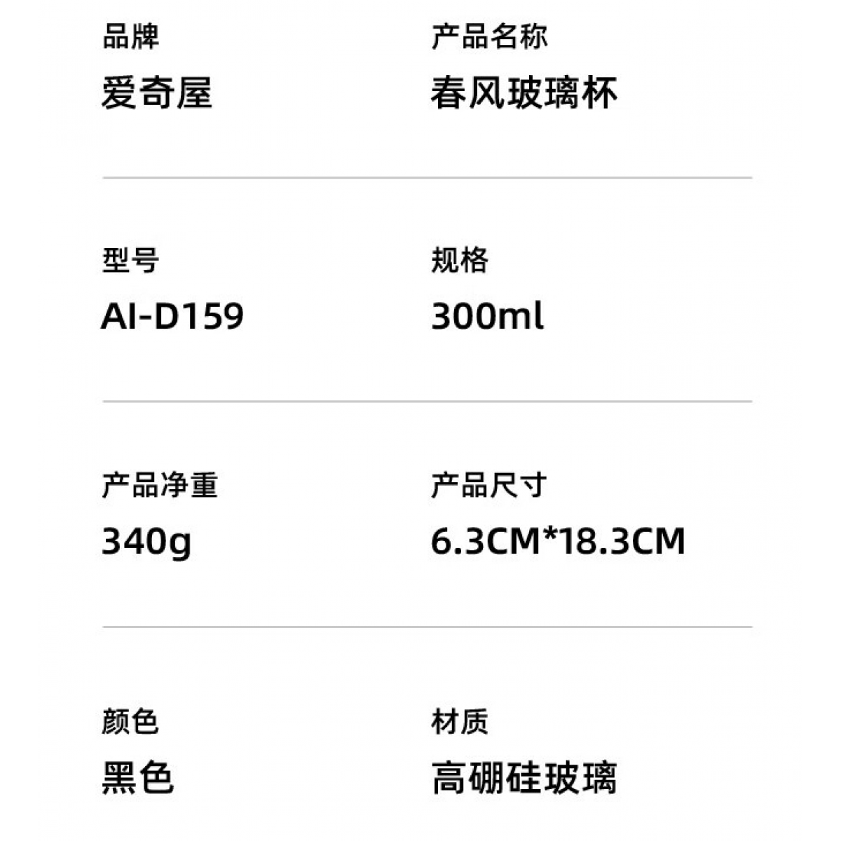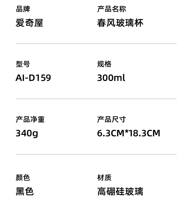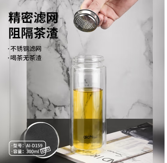 商品名称:爱奇屋 双层高硼硅玻璃杯 300ml AI-D159 春风