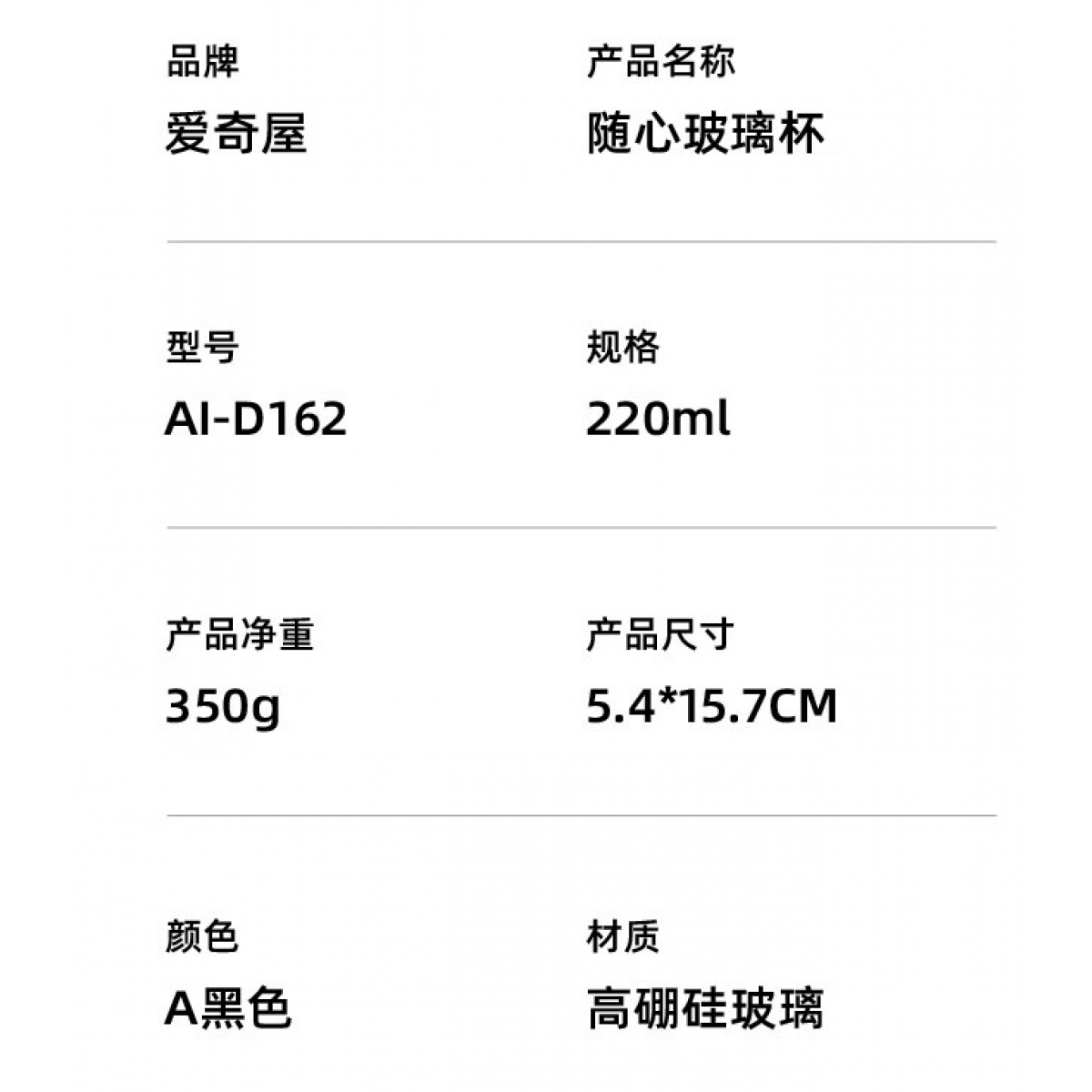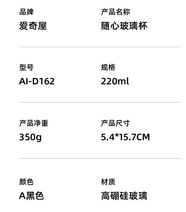 商品名称:爱奇屋 高硼硅玻璃杯 220ml AI-D162 随心