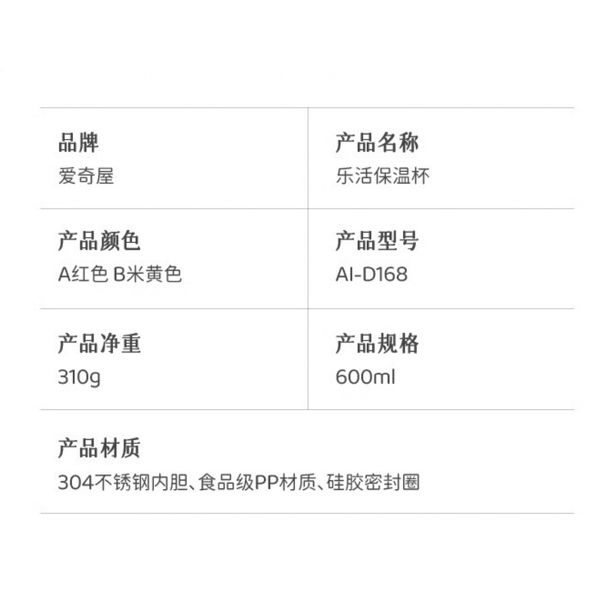 爱奇屋 乐活保温杯 AI-D168 600ml