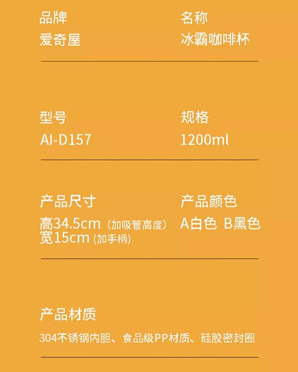 商品名称:爱奇屋 冰霸杯 AI-D157 1200ml