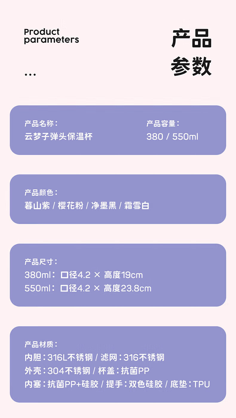 商品名称:物生物 云梦子弹头保温杯 550ml JV012336-0550