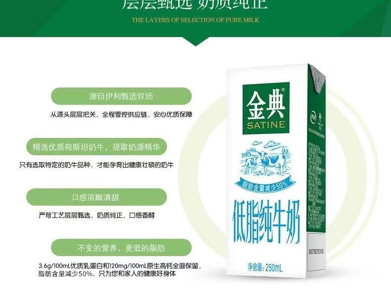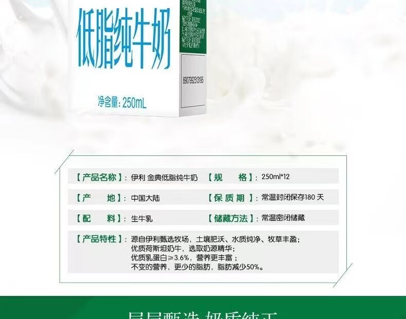 商品名称:伊利|金典低脂纯牛奶250ml*12