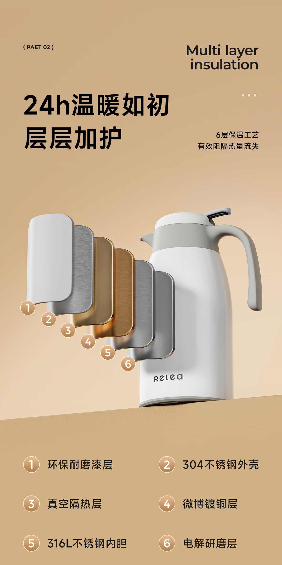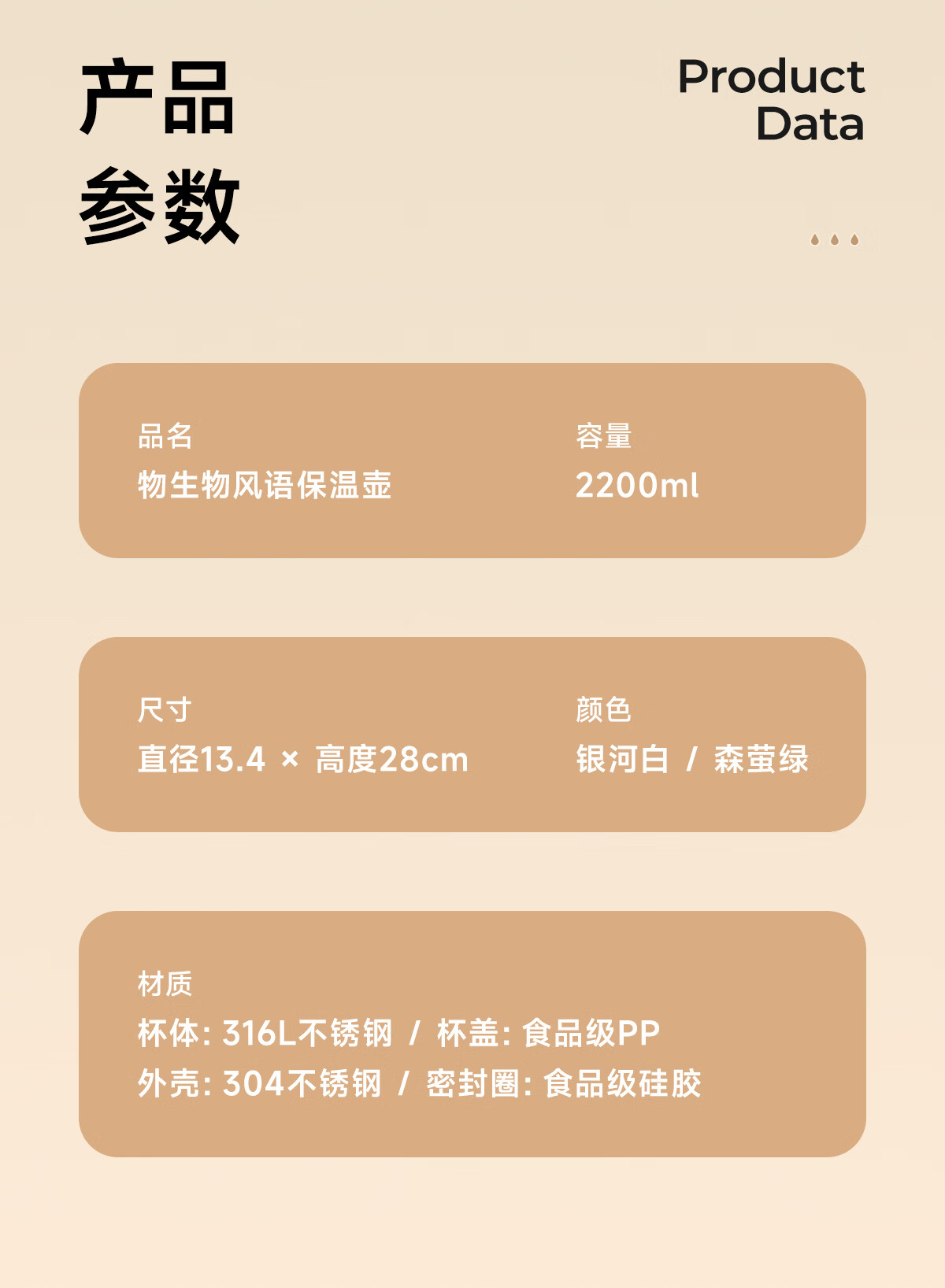 商品名称:物生物 风语保温壶 2200ml JV022302-2200