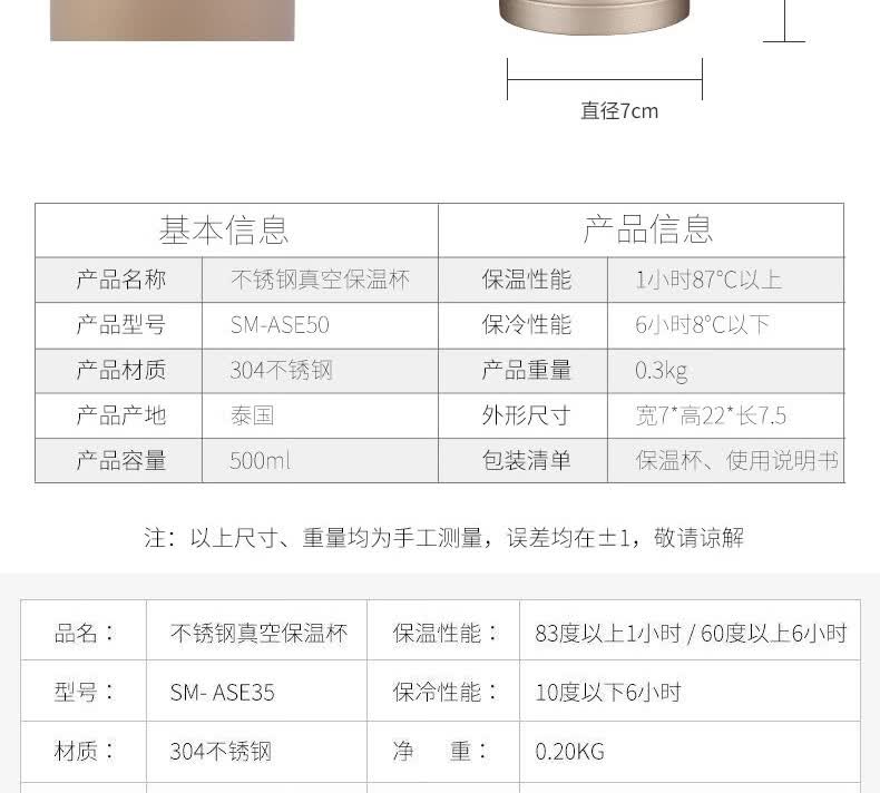 商品名称:象印 不锈钢真空保温杯SM-ASE35 350ml