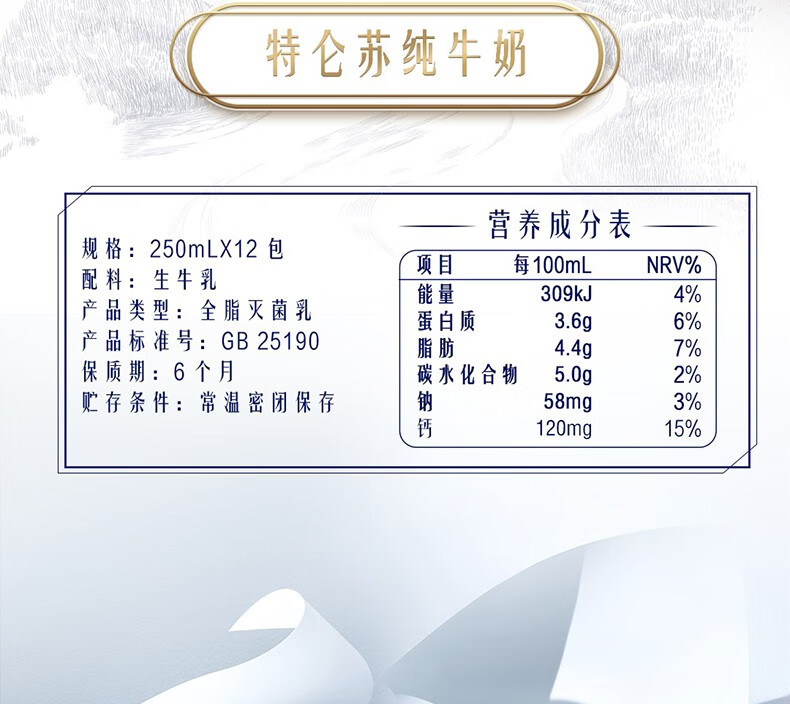 商品名称:蒙牛|特仑苏纯牛奶苗条装250ml×12盒