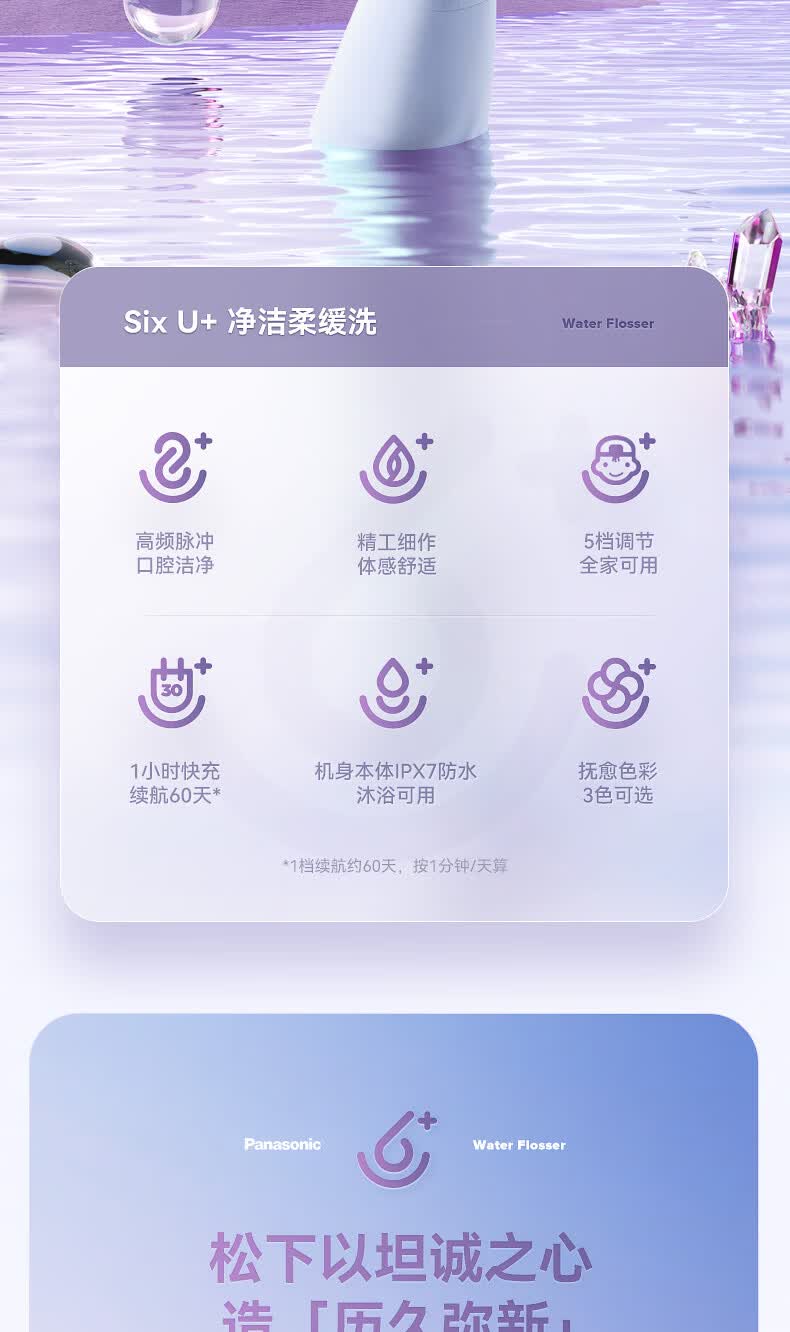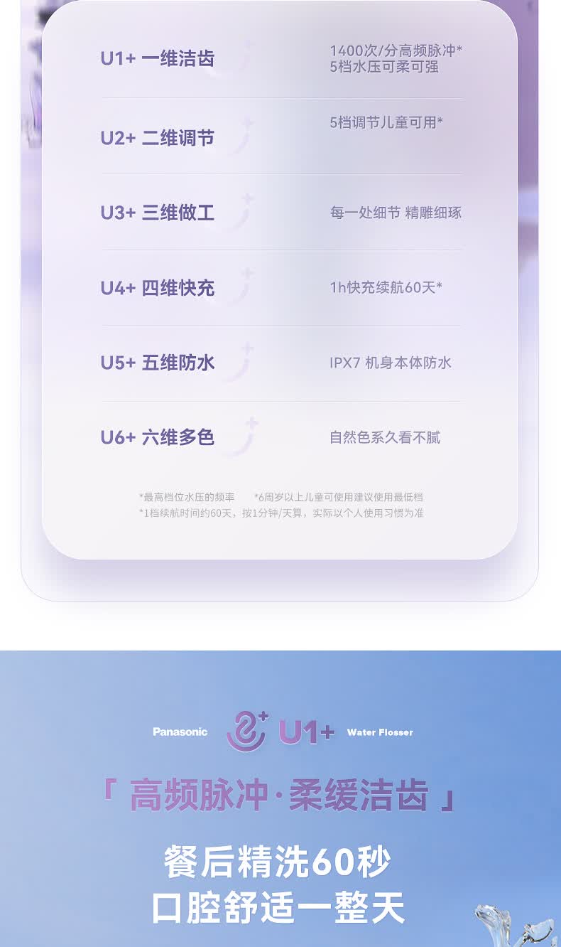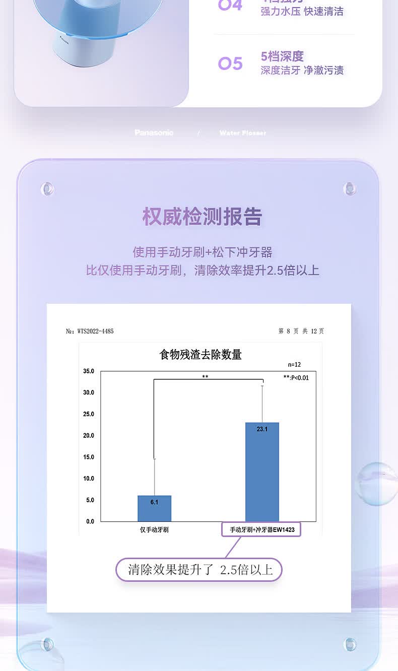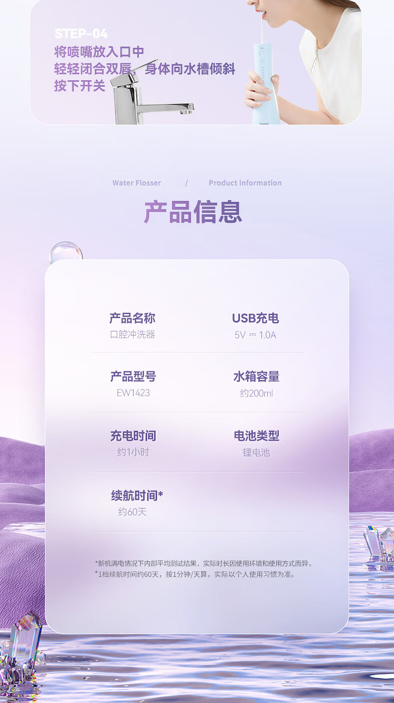 商品名称:松下 家用超声波冲牙器-EW-1423 白色