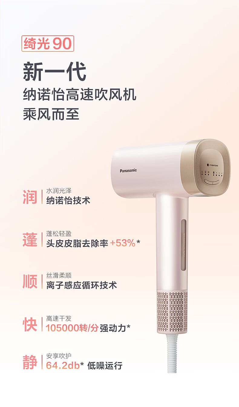 商品名称:松下 ”纳诺怡”高速吹风机-EH-NW90-K405 黑色
