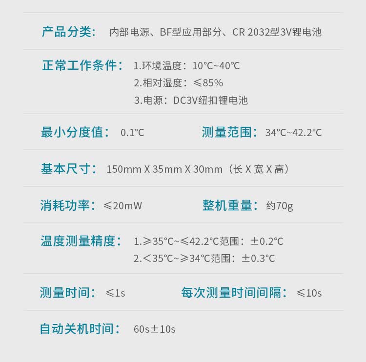 测量范围 :34℃~42.2℃