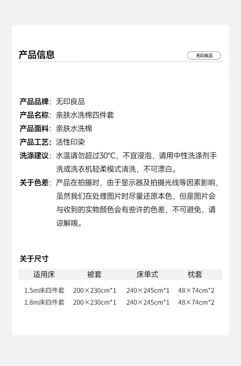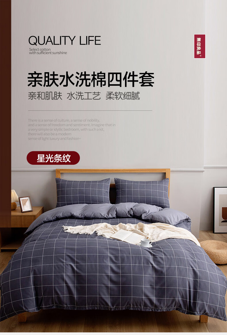 商品名称:無印良品 亲肤水洗棉四件套星光条纹 200*230cm MUJI-TJ22-61