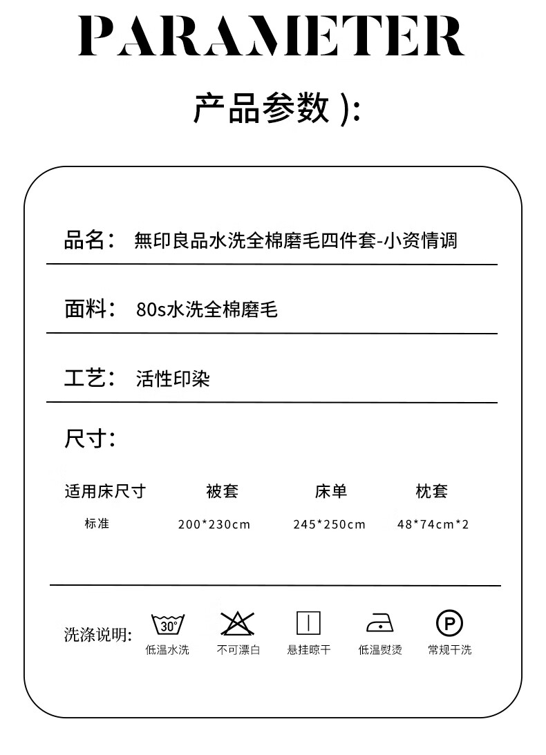 商品名称:無印良品 水洗磨毛四件套小资情调 200*230cm MUJI-TJ23-85