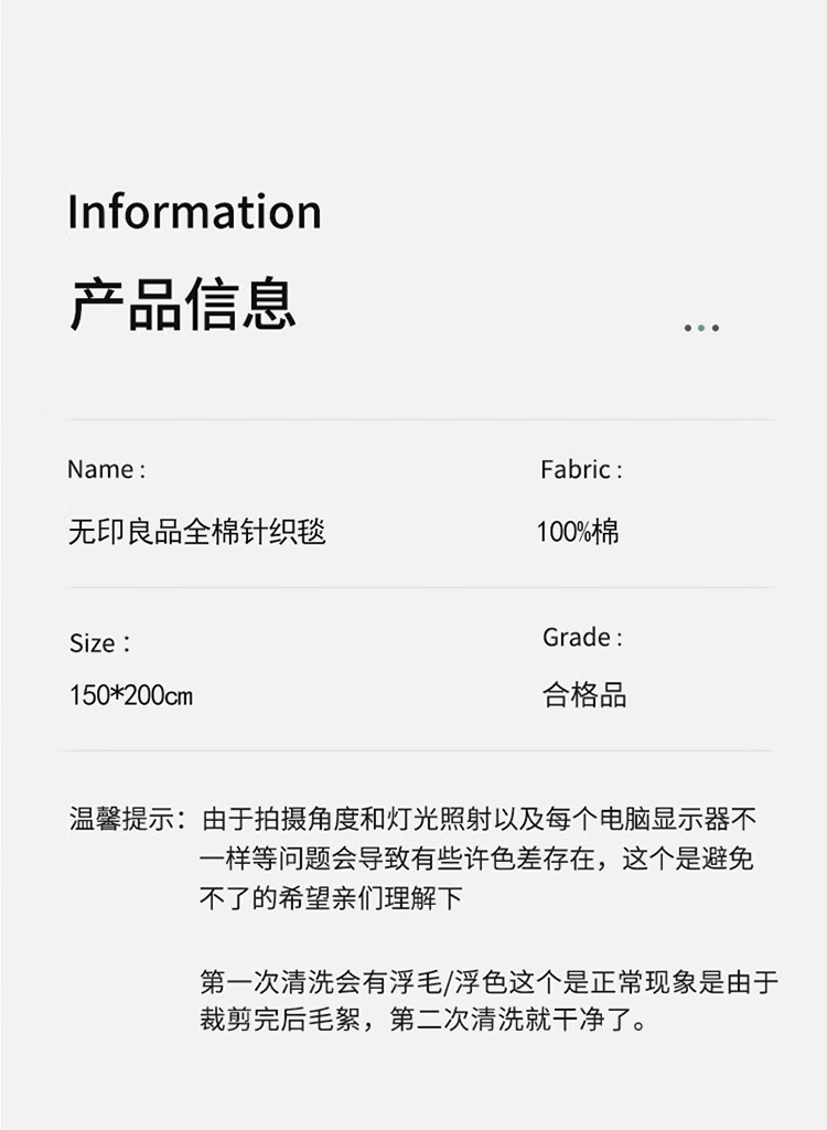商品名称:無印良品 全棉针织毯 MUJI-TZ23-08
