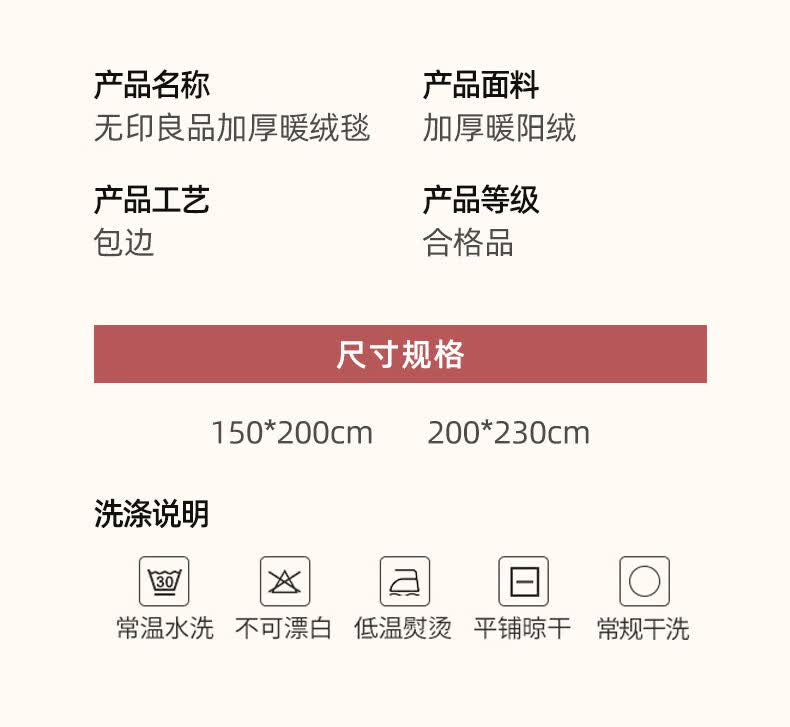 商品名称:無印良品 加厚暖绒毯 MUJI-TZ22-15