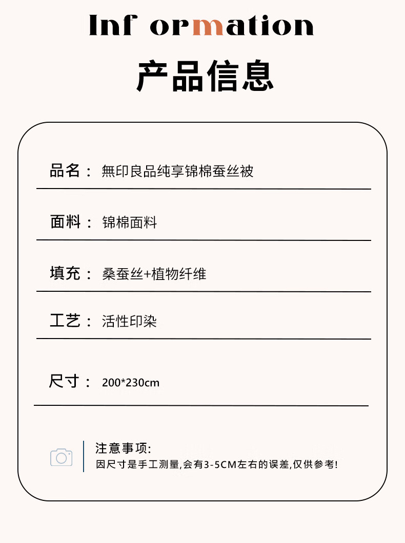 商品名称:無印良品 纯享锦棉蚕丝被 MUJI-B23-63