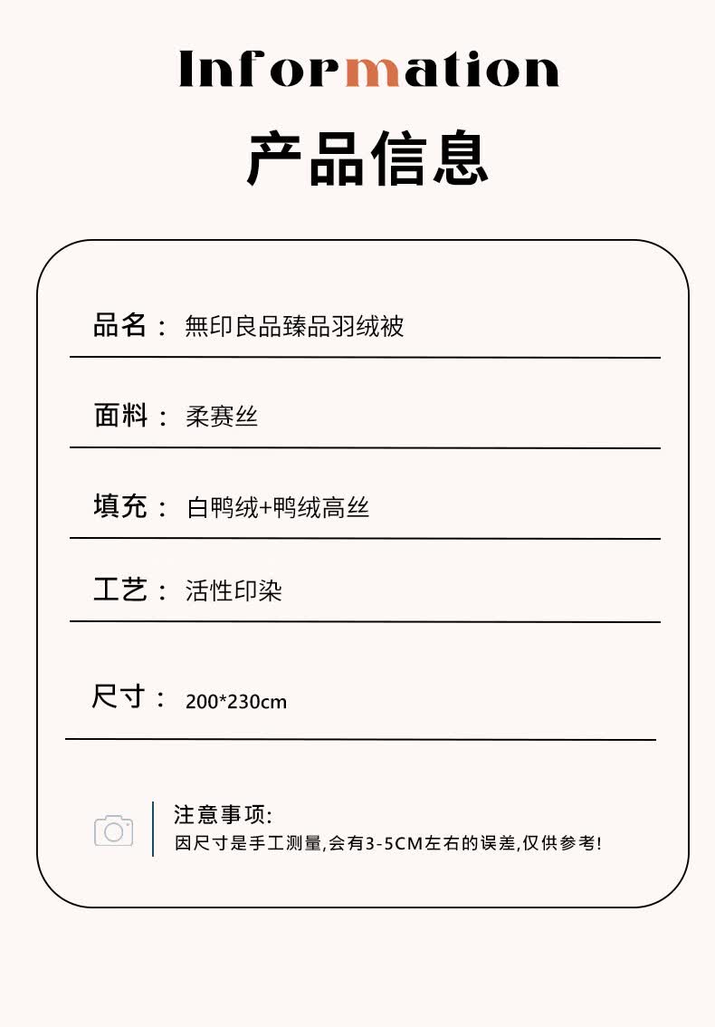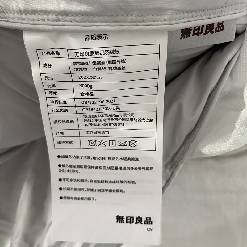 商品名称:無印良品 臻品羽绒被 MUJI-B23-68