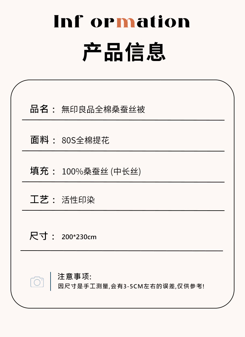 商品名称:無印良品 全棉桑蚕丝被 MUJI-B23-66