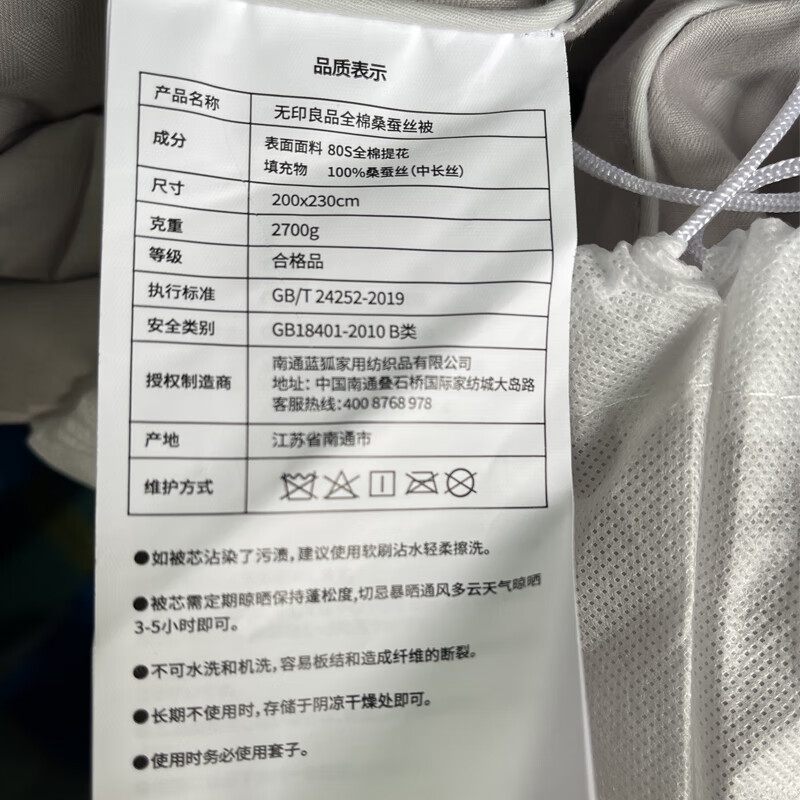 商品名称:無印良品 纯桑蚕丝被 MUJI-B23-67