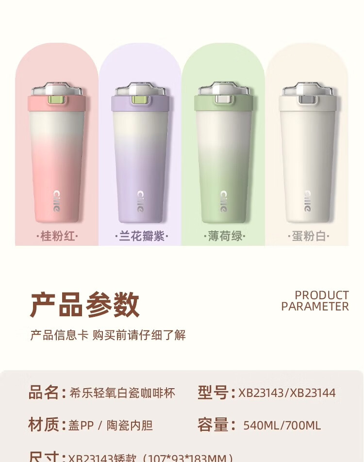 商品名称:希乐 轻氧白瓷咖啡杯 XB-23143 540ml