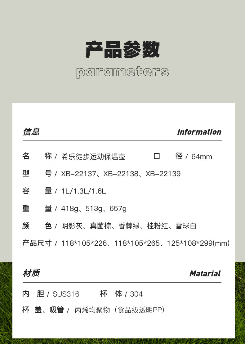商品名称:希乐 徒步运动保温壶 XB-22138 1.3L